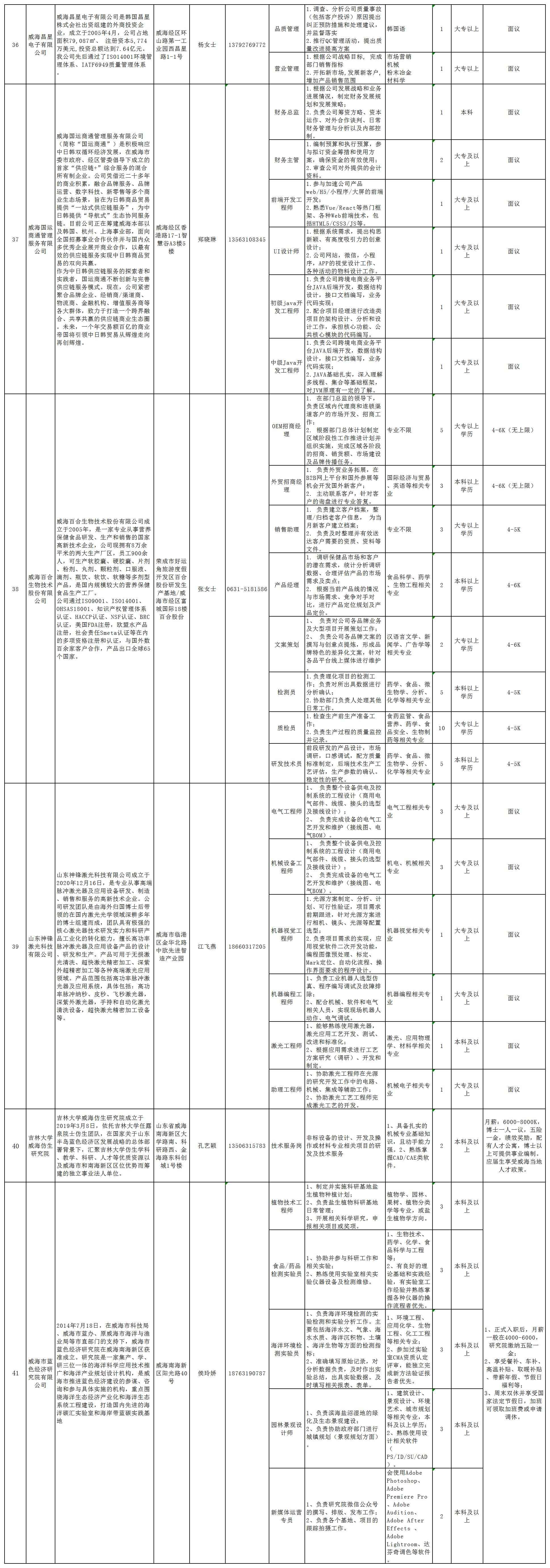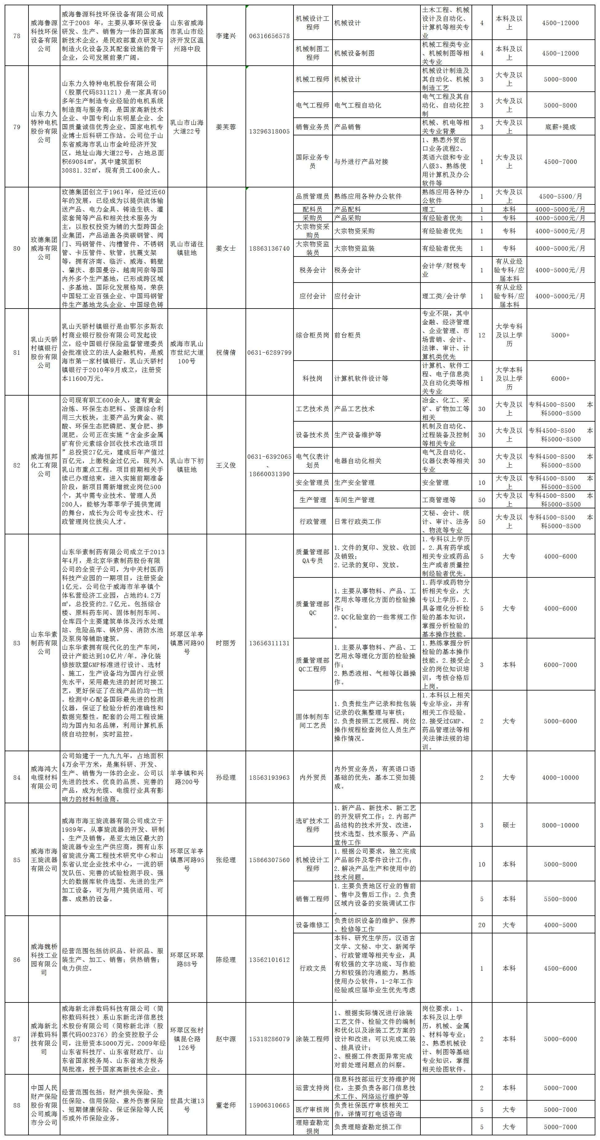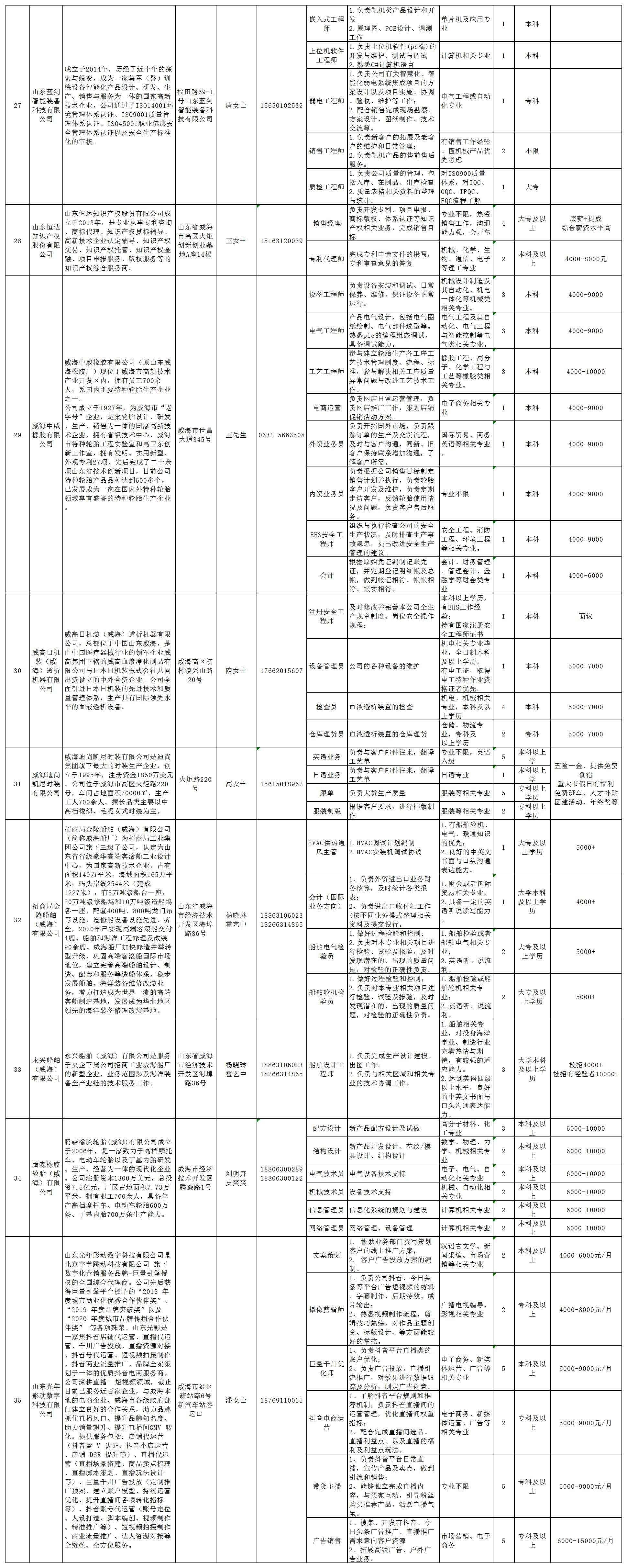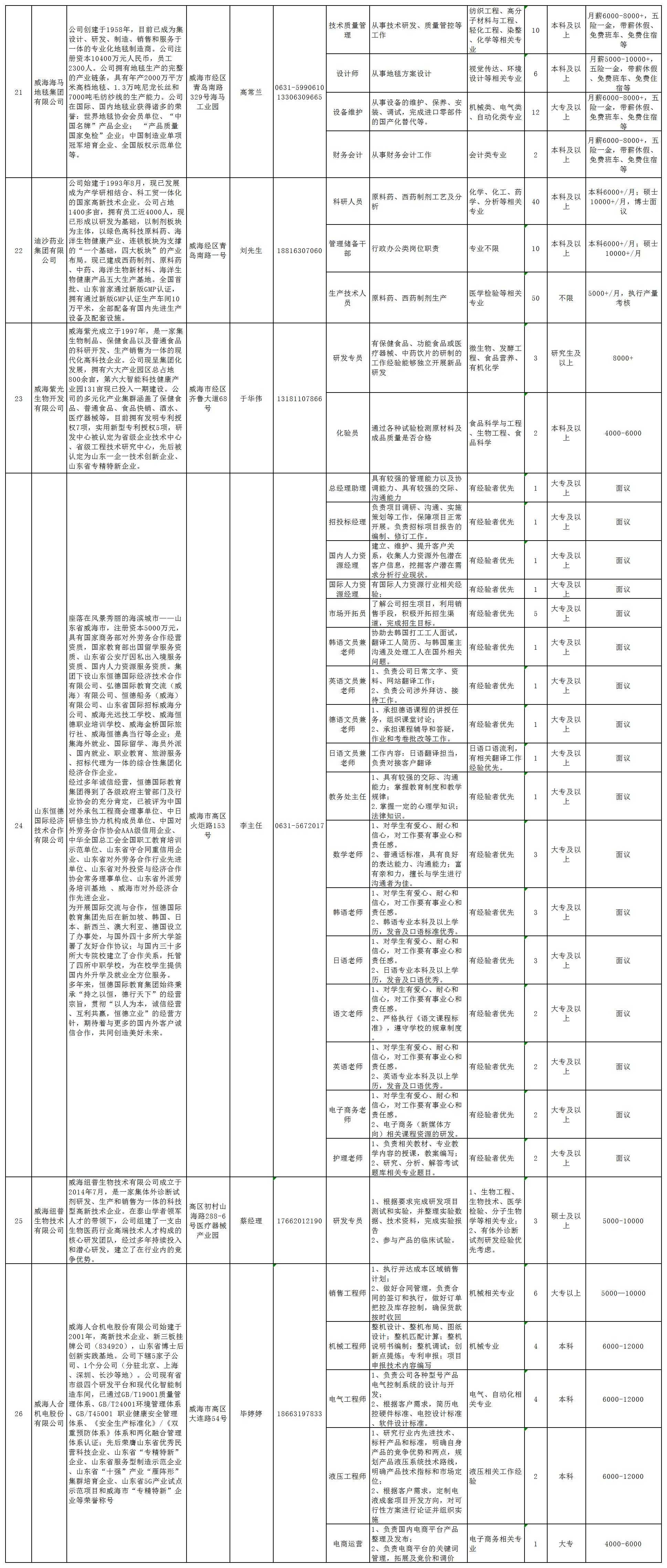 威海市2022年重點(diǎn)企業(yè)人才需求統計表