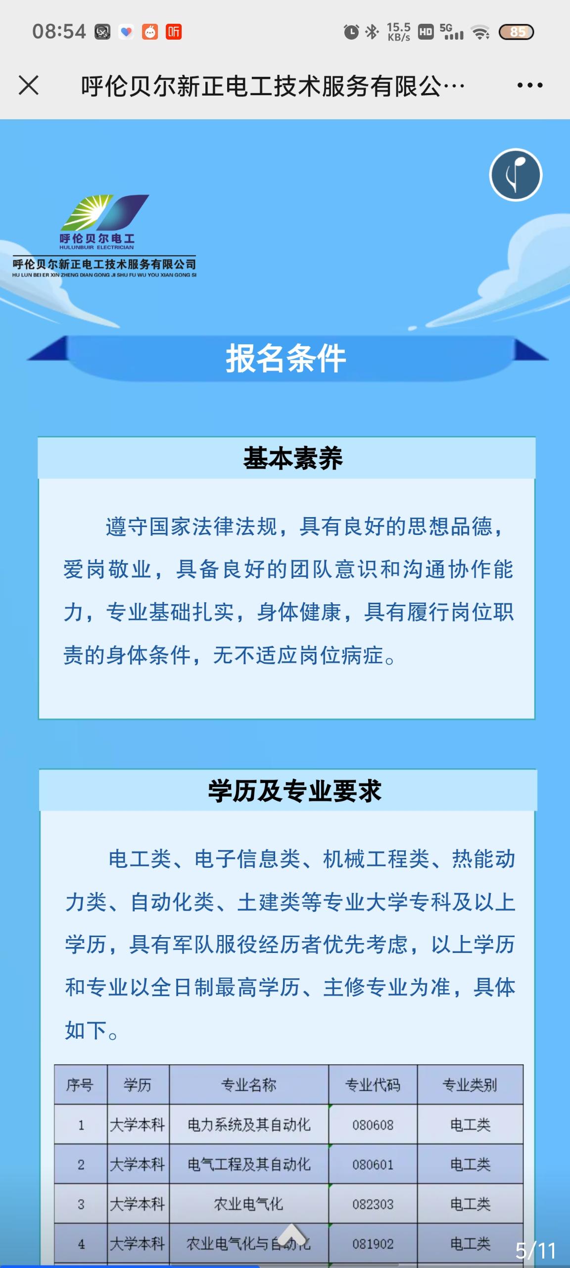 呼倫貝爾新正電工技術(shù)服務(wù)有限公司社會(huì )招聘