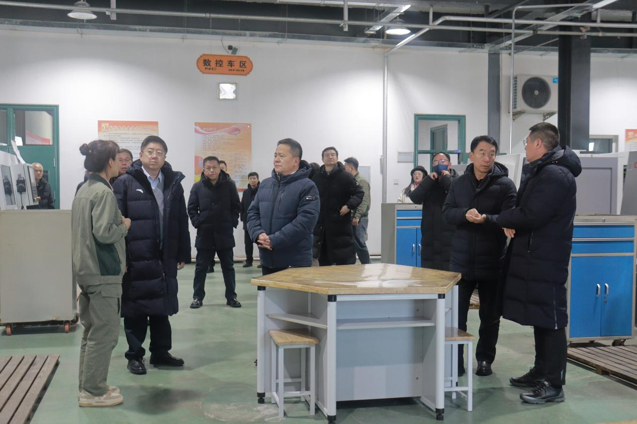 畢濤副廳長(cháng)一行深入學(xué)院禮堂、食堂、學(xué)生公寓、機電實(shí)訓與機械制造中心、綜合實(shí)訓中心等場(chǎng)地實(shí)地查看,詳細了解學(xué)院專(zhuān)業(yè)設置、師資隊伍建設、辦學(xué)成果、技能競賽和安全生產(chǎn)工作等情況。過(guò)程中,王曉龍院長(cháng)還就制約學(xué)院辦學(xué)的主要因素、學(xué)院難以解決的辦學(xué)困難和急需解決的安全隱患問(wèn)題向畢濤副廳長(cháng)一行領(lǐng)導進(jìn)行匯報。
